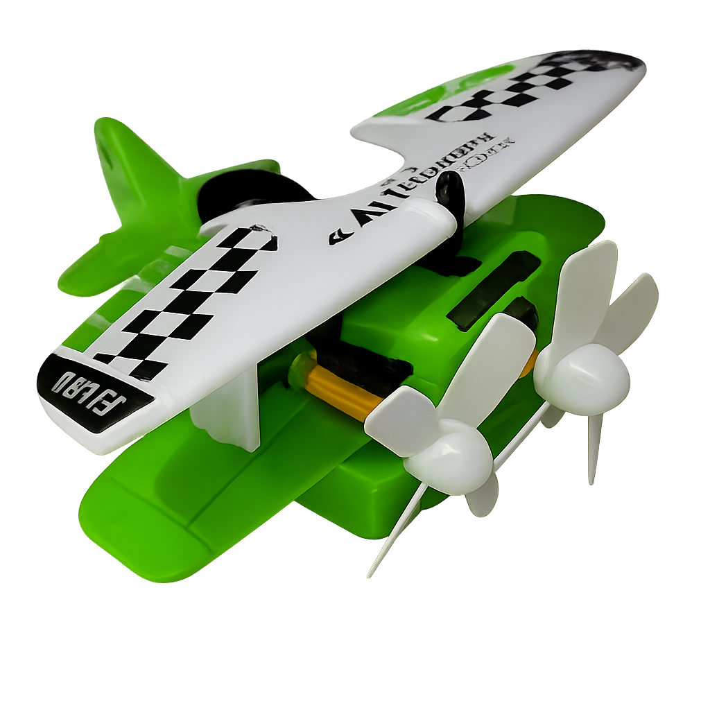 Vem com duas hélices que podem ser lançadas através de um alavanca que aciona o disparo.